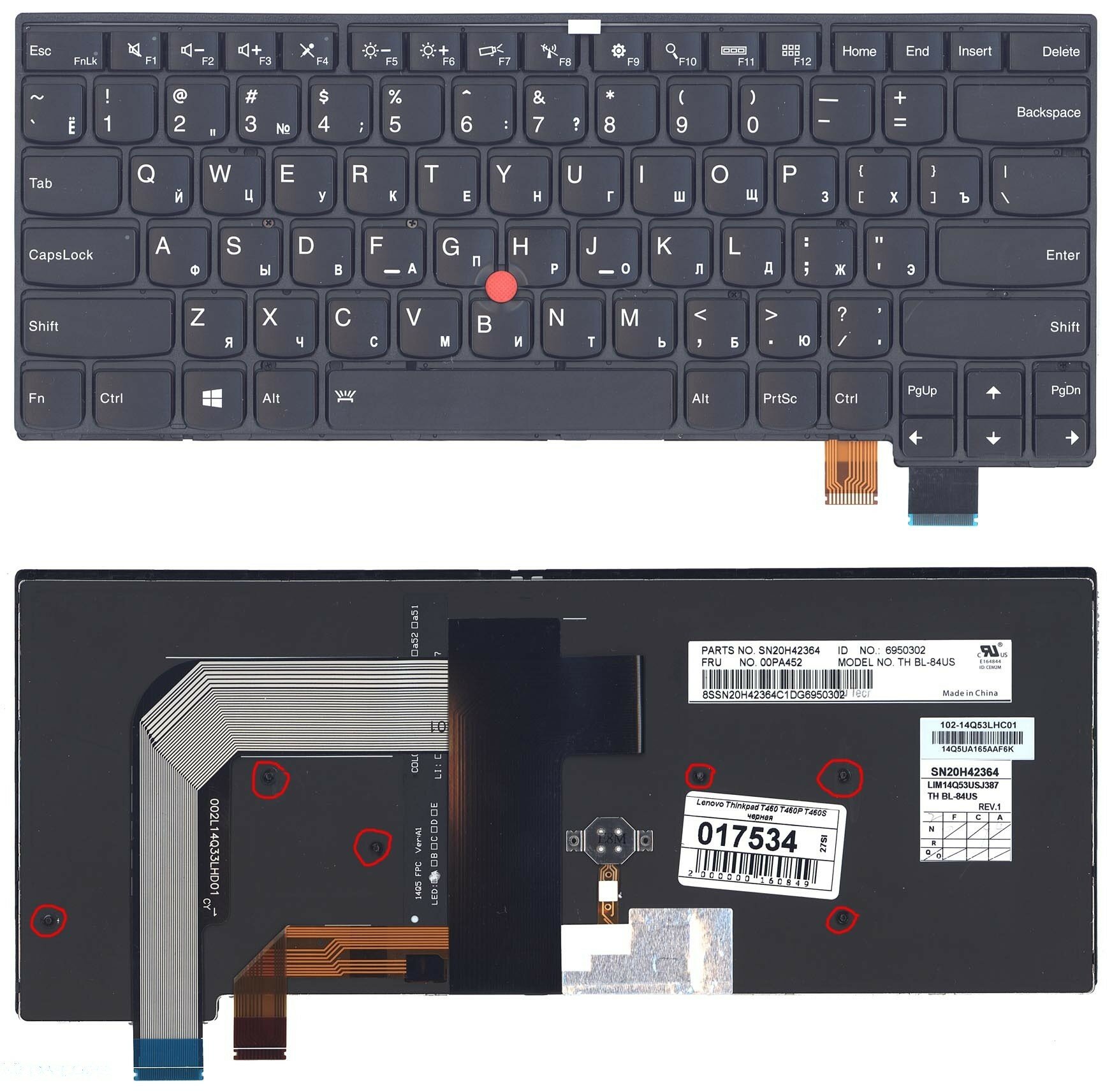 10 цен на Клавиатура для Lenovo Lenovo Thinkpad T470S черная с черной рамкой, с подсветкой и стиком
