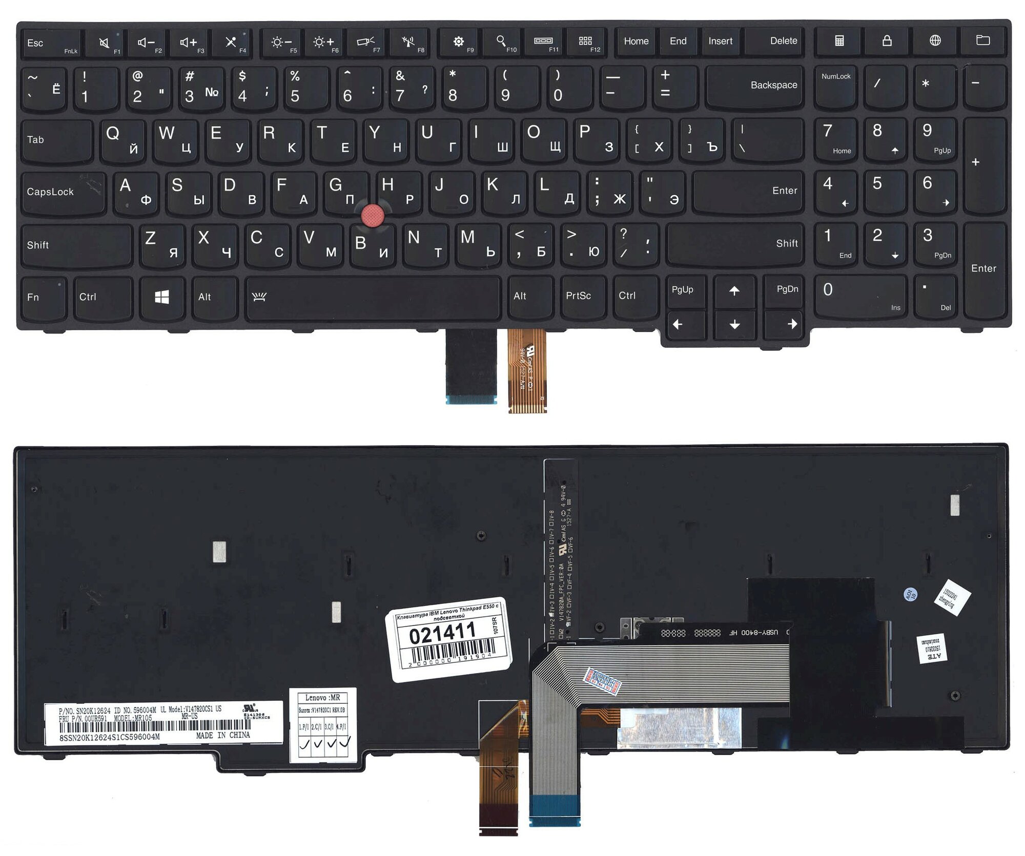 Клавиатура для Lenovo ThinkPad Edge E560 черная с черной рамкой, подсветкой и TrackPoint информация: