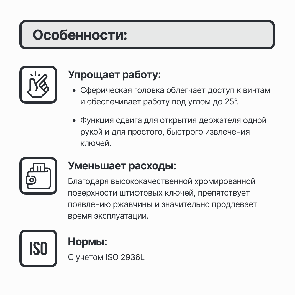 Набор штифтовых ключей Wiha 36453 в держателе Compact Шестигранник со сферической головкой 11 предм матовое хромирование