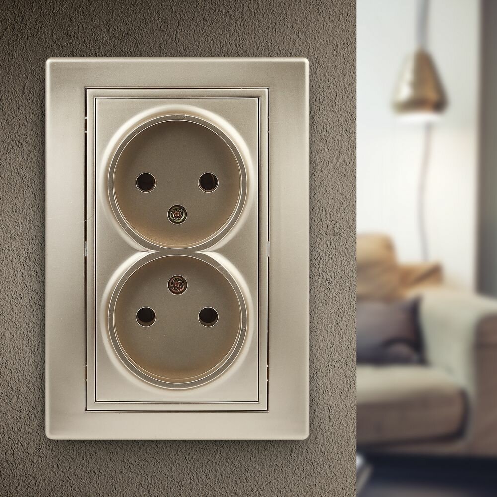 Отзывы на Розетка Intro Plano 1-204-04 без заземления двойная 2х2P 16А-250В IP20 скрытой установки Plano шампань
