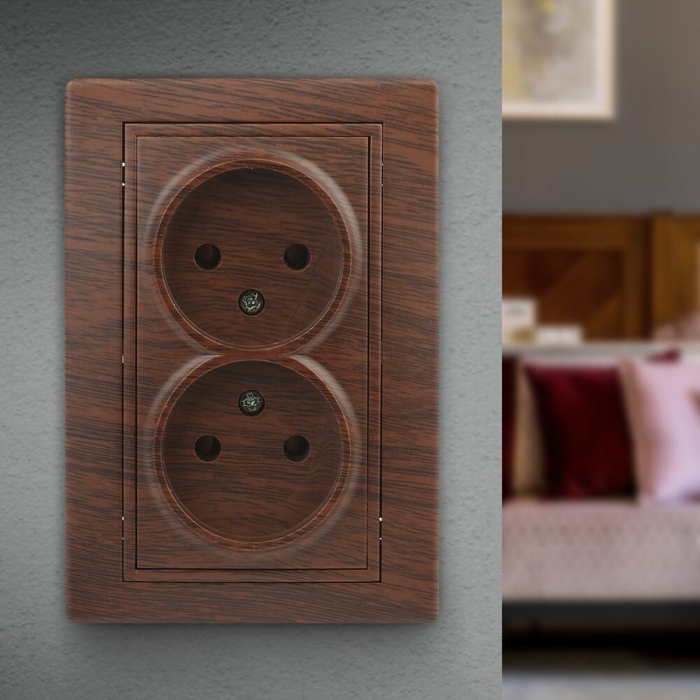Отзывы на Розетка Intro Plano 1-204-10 без заземления двойная 2х2P 16А-250В IP20 скрытой установки венге