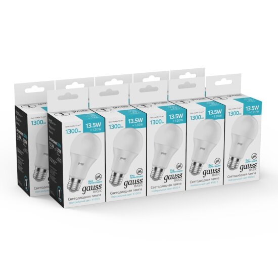Светодиодная лампа Gauss Basic A60 13,5W 1300lm 4100K Е27 LED 1/10/50 информация: