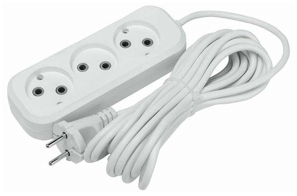 Удлинитель Jett 5м 155-203 РС-3 (провод ПВС 2х0.75) , 3 розетки, б/з, 10А / 2200 Вт белый