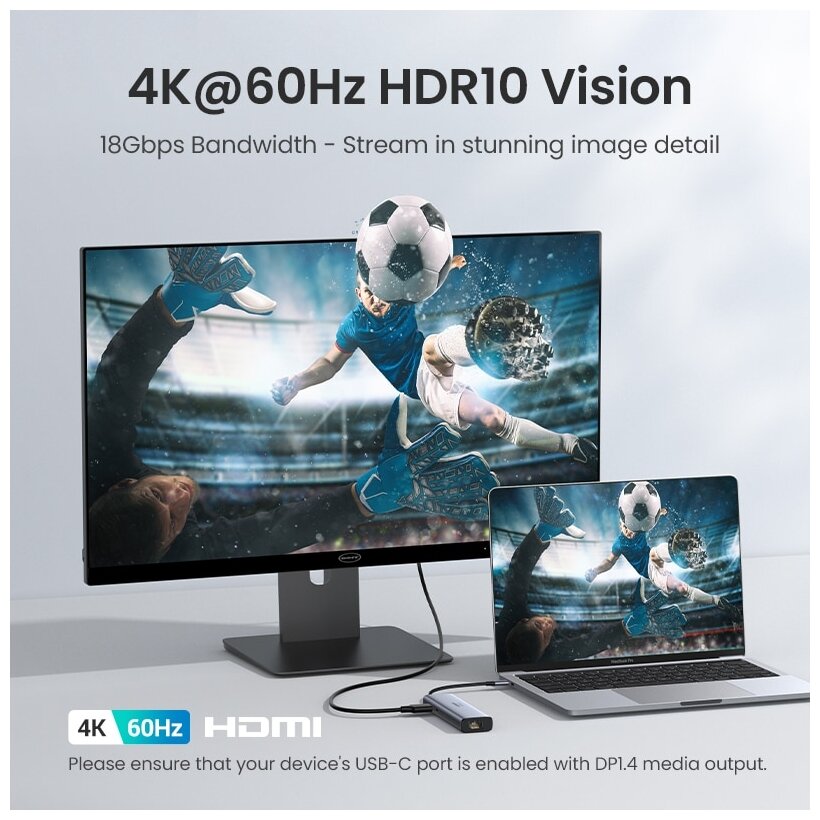 Ugreen cm512 usb type-c -> 2*usb3.0 + hdmi 4k@60hz + lan 1gb, sd/microsd
