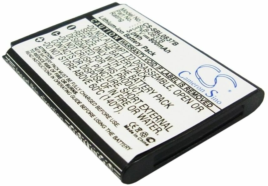 Аккумулятор CameronSino CS-SBL0837B для фотоаппарата Samsung Digimax L70, L83, L201, NV8, NV10 (SLB-0837, SLB-0837B) 800mAh информация: