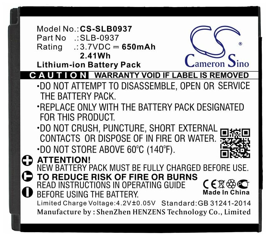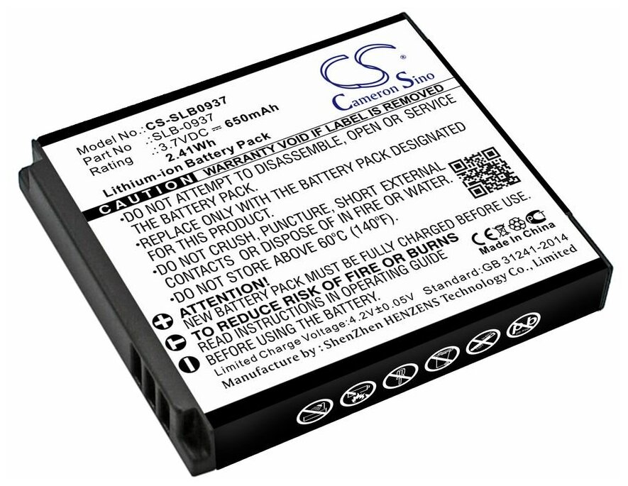 Аккумулятор CameronSino CS-SLB0937 для фотоаппарата Samsung Digimax i8, L730, L830, NV4, NV33, PL10 (SLB-0937) 650mAh информация: