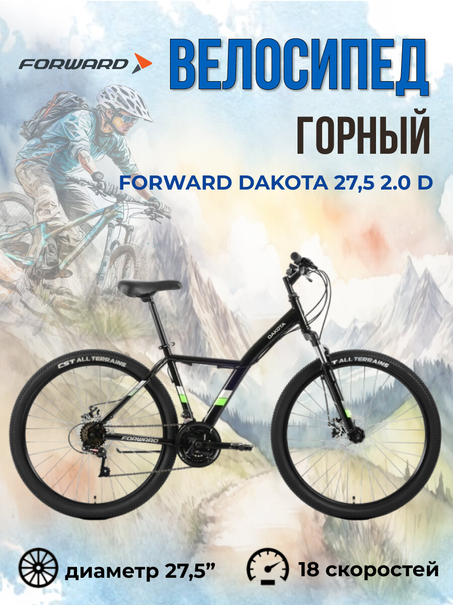 10 цен на Горный велосипед Forward Dakota 27,5 2.0 D (2022) 16.5" Черно-зеленый (152-168 см)
