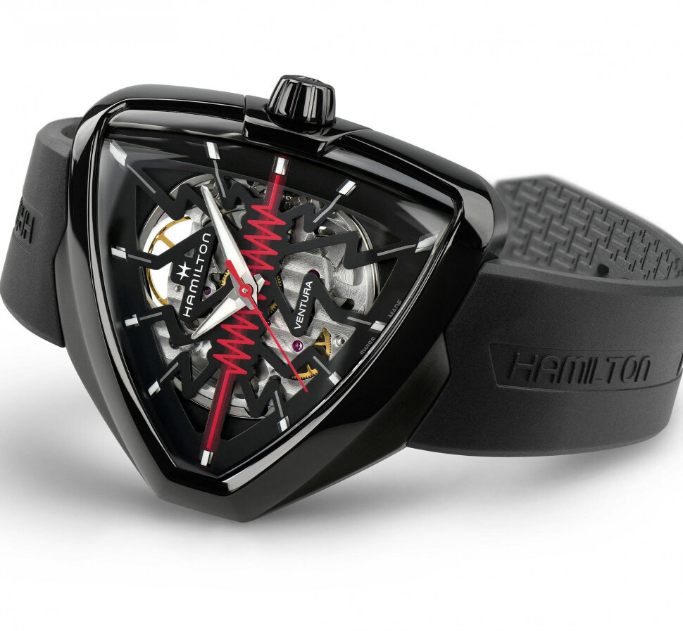 Швейцарские механические часы с автоподзаводом Hamilton Ventura Skeleton Auto H24535331 на каучуковом браслете, с водозащитой 5 бар и международной гарантией от производителя