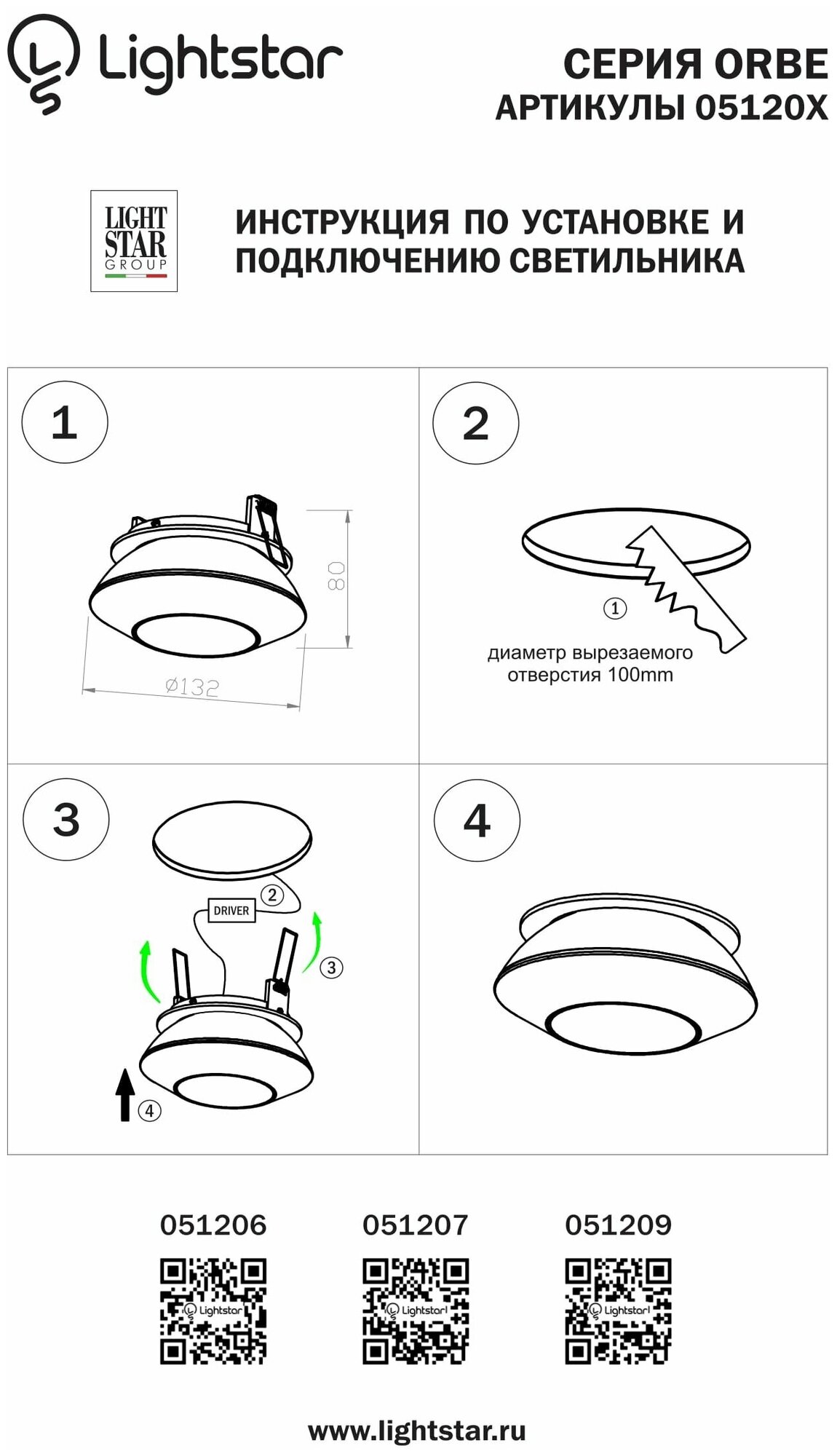 | Комплектация | Встраиваемые светильники Lightstar 051209 |