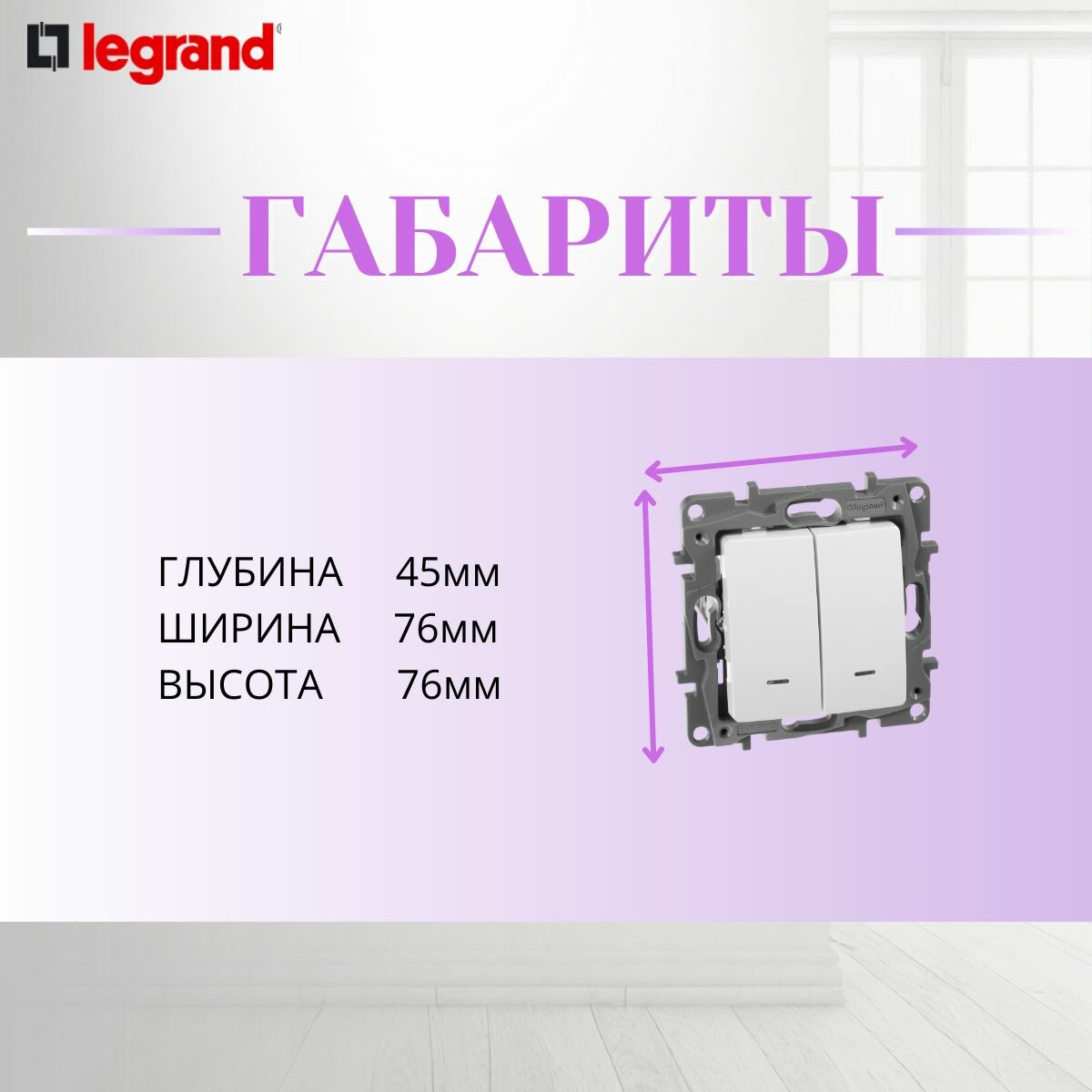 Переключатель двухклавишный с подсветкой/индикацией Legrand Etika 10А 250В безвинтовые зажимы белый 672216 (комплект 2шт) информация: