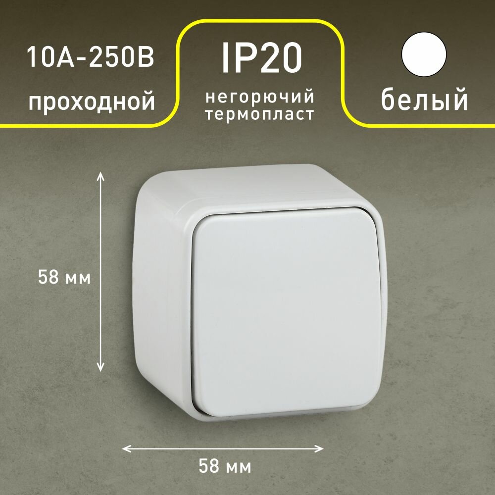 Выключатель проходной одноклавишный переключатель Intro Polo 3-103-01 открытой установки 10А 250В белый информация: