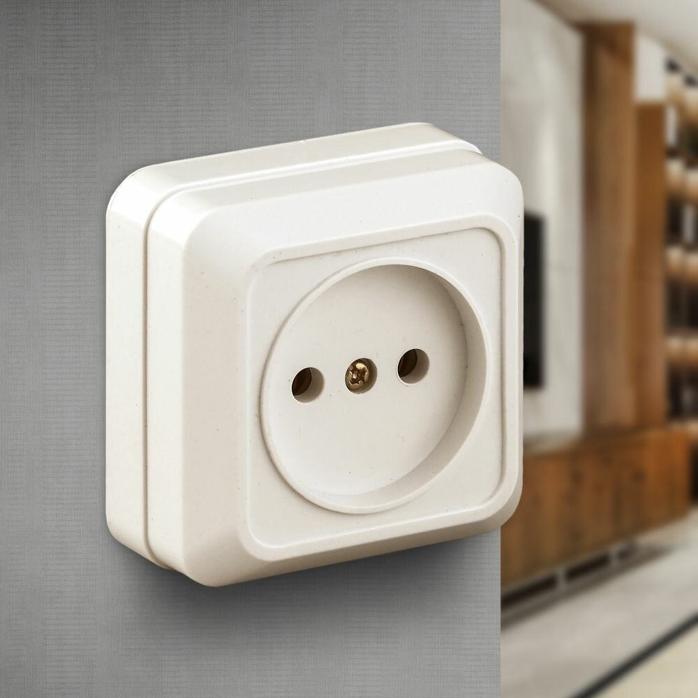 Отзывы на Розетка Intro Quadro 2-201-02 без заземления 2P 16А-250В IP20 открытой установки слоновая кость