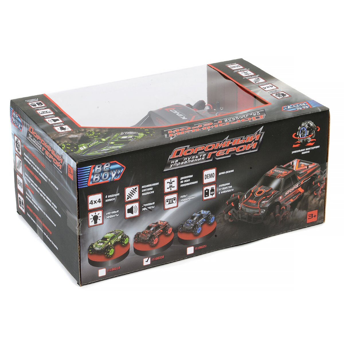 Машинка р/у с подсветкой корпуса и колесами с катками Beboy IT106320