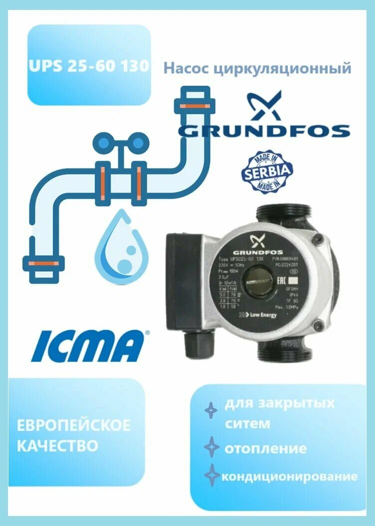10 цен на Насос ICMA Grundfos 25/60, монтажный размер 130мм, 3 скорости