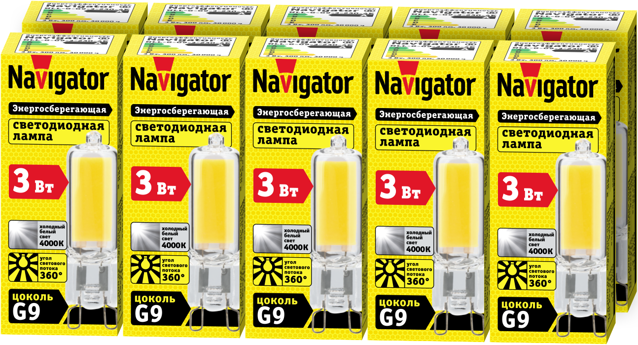 10 цен на Светодиодная лампа Navigator 61 490, 3 Вт, цоколь G9, дневного света 4000К, упаковка 10 шт.