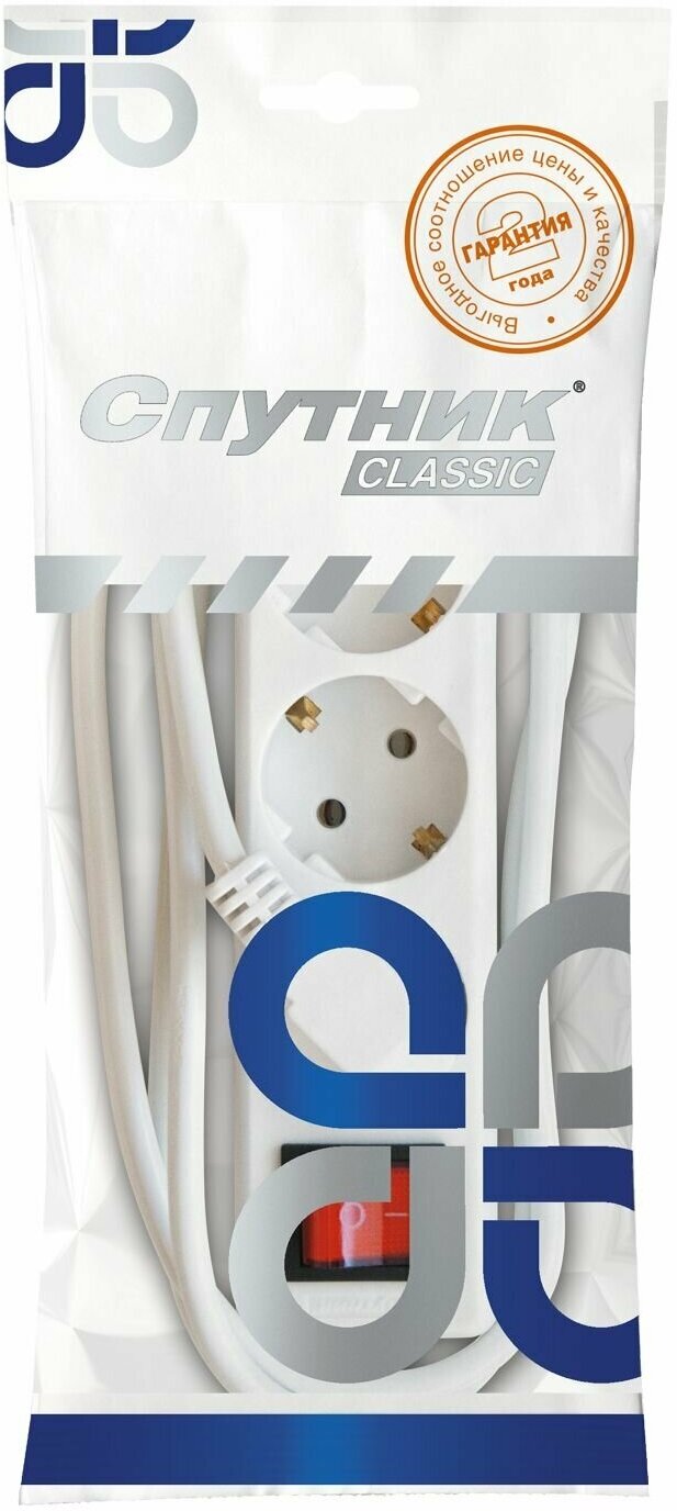 Сетевой удлинитель Спутник ВК-303, 3 розетки, 3 м, белый 880 ₽