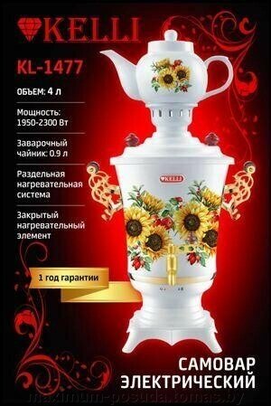 10 цен на Электрический самовар KELLI KL-1477 4 л, 1950-2300 Вт, белый