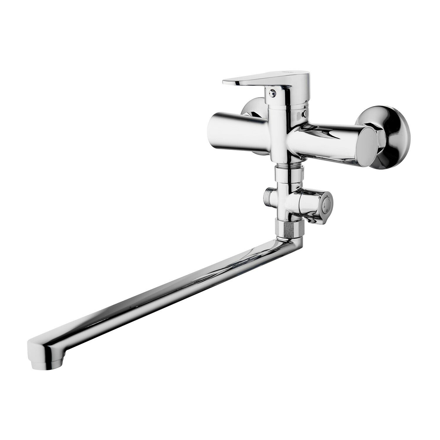 Смеситель на раковину настенный Эверест B46-350 с круглым поворотным изливом, кран-буксы 1/2", хром