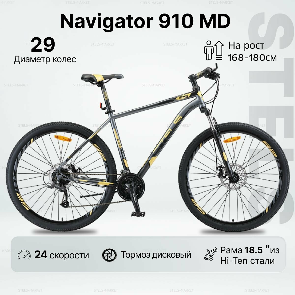 Велосипед горный Navigator-910 MD 29" ,размер рамы/цвет; 18.5" Чёрный/золотой ,STELS (Стелс) информация: