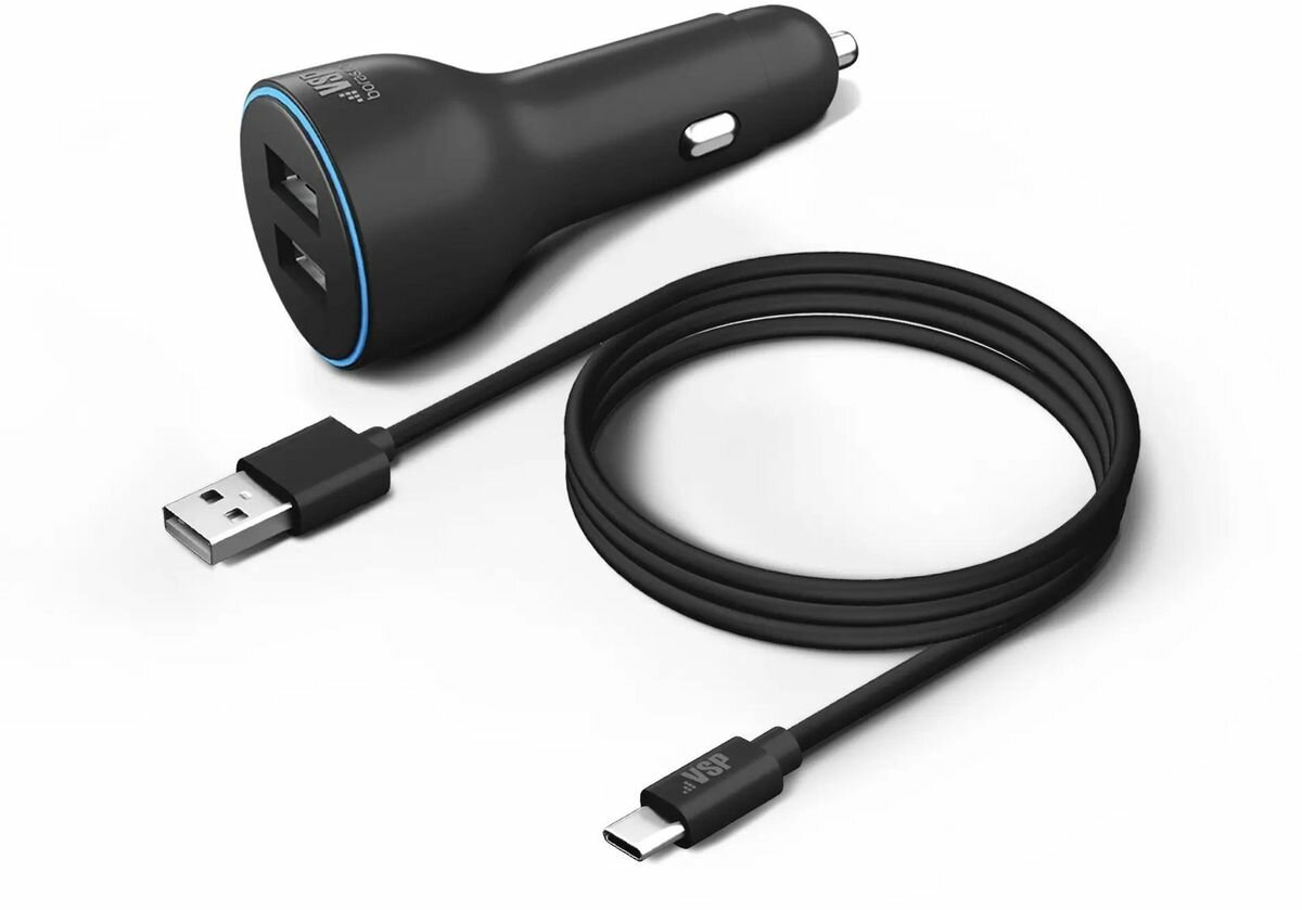Автомобильное зарядное устройство BORASCO 2xUSB, USB type-C, 2.4A, черный [50179] информация: