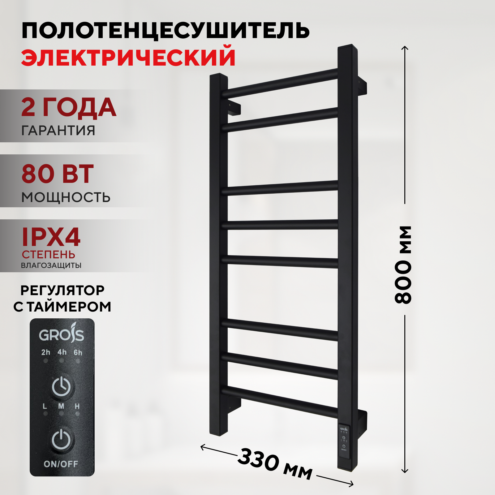Grois Полотенцесушитель электрический GR-102 430х800 черный матовый подключение справа и слева