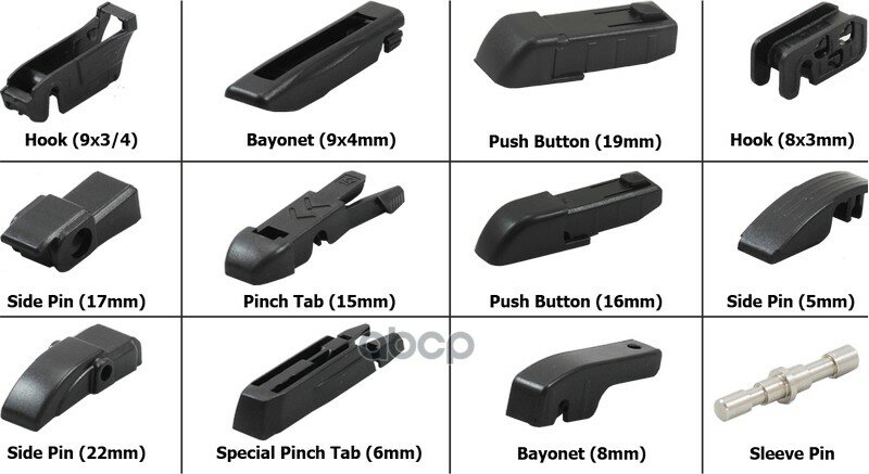 | Тип крепления | боковой зажим (pinch tab) / боковой штырь (Pin Arm) / верхний замок (top lock) / клешня (claw) / кнопка (push button) / крючок (hook) / штыковой замок (bayonet) |