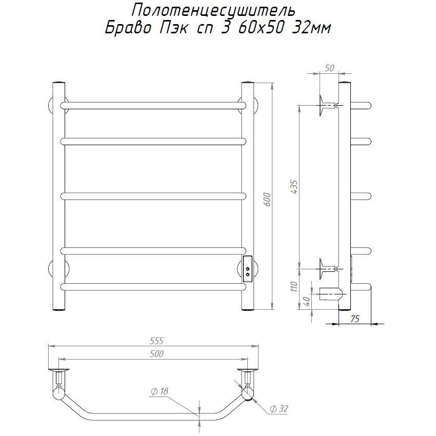 Полотенцесушитель электрический Тругор Браво Пэк сп 3 60х50 32 мм информация: