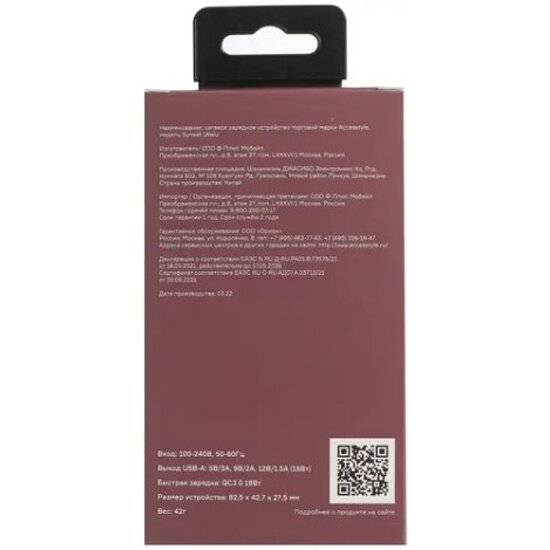 | Тип | сетевое зарядное устройство |