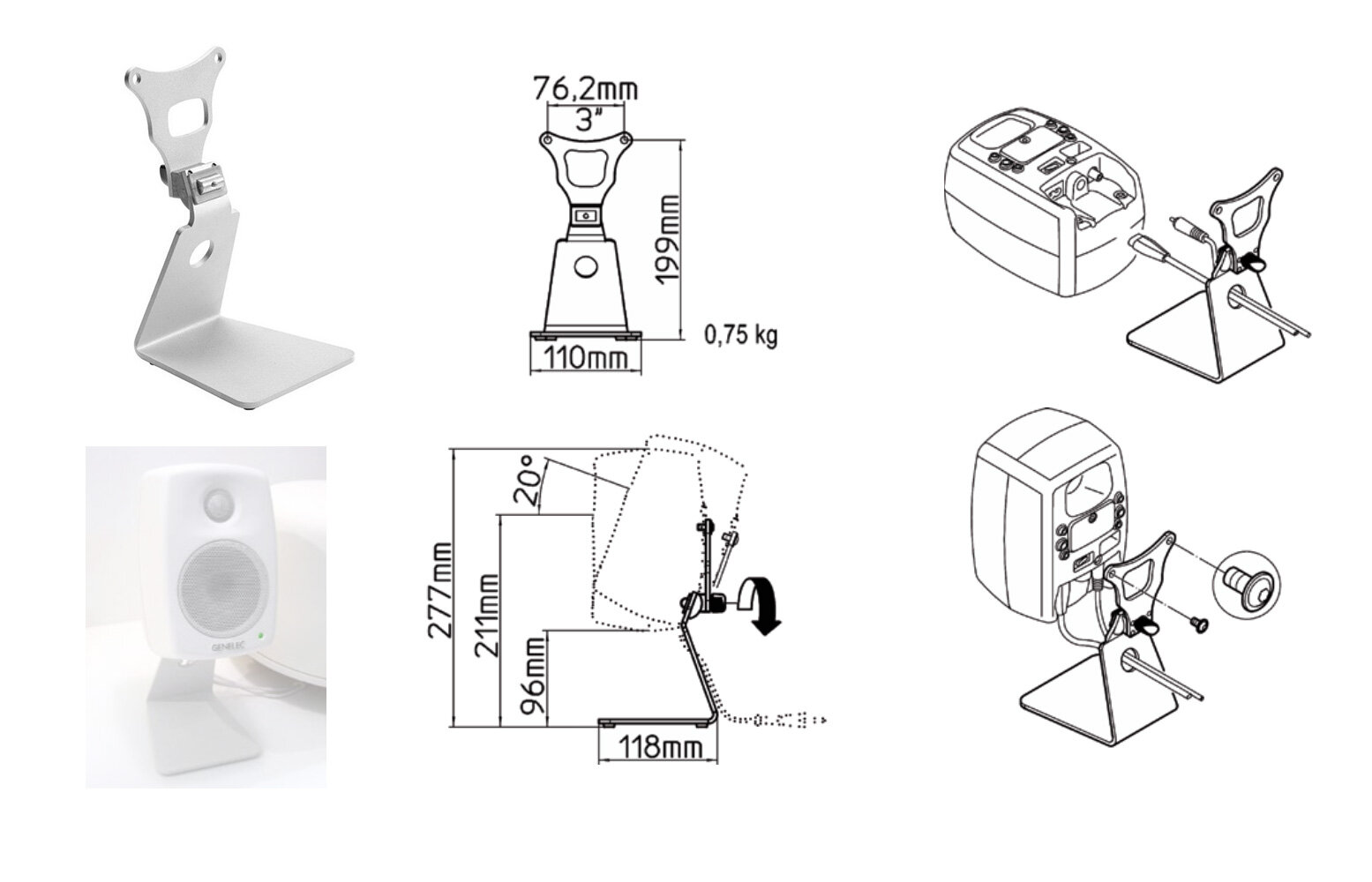 Отзывы на Genelec 8010-320W настольная стойка для монитора 8010, L-форма, регулировка угла наклона, белая