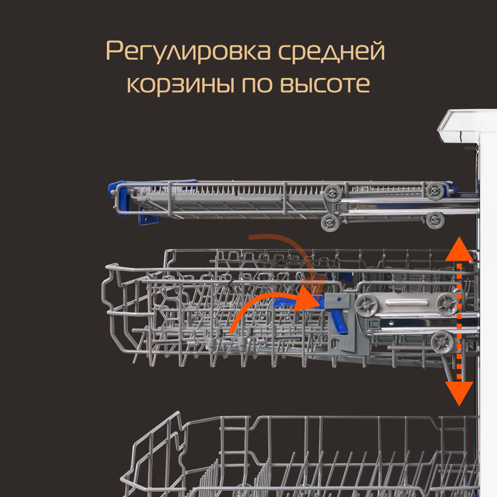 | Особенности конструкции | внутренняя поверхность из нержавеющей стали / дисплей / использование средств 3 в 1 / регулируемая по высоте корзина для посуды / таймер отсрочки |