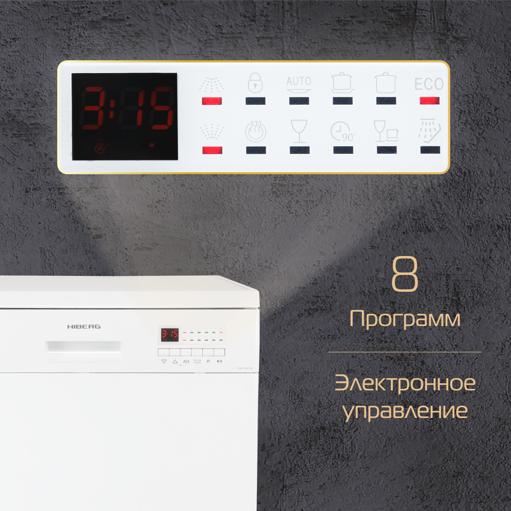 Посудомоечная машина HIBERG F68 1430 W, отдельностоящая, 8 программ, 3 корзины, выбор зоны мытья, цвет белый 46 800 ₽