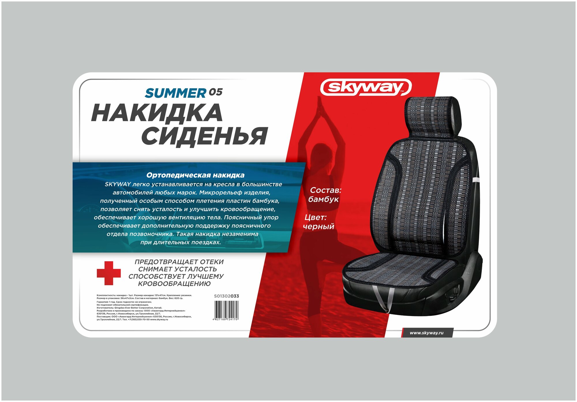 SKYWAY S01302033 Накидка сиденья бамбук Summer-05 с поддержкой спины черный; SKYWAY информация: