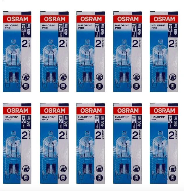 10 цен на Лампочка галогенная G9 теплый белый OSRAM 66733 Halopin Pro 33W(40W) 240V 2700К 460Lm капсула (10 шт.)