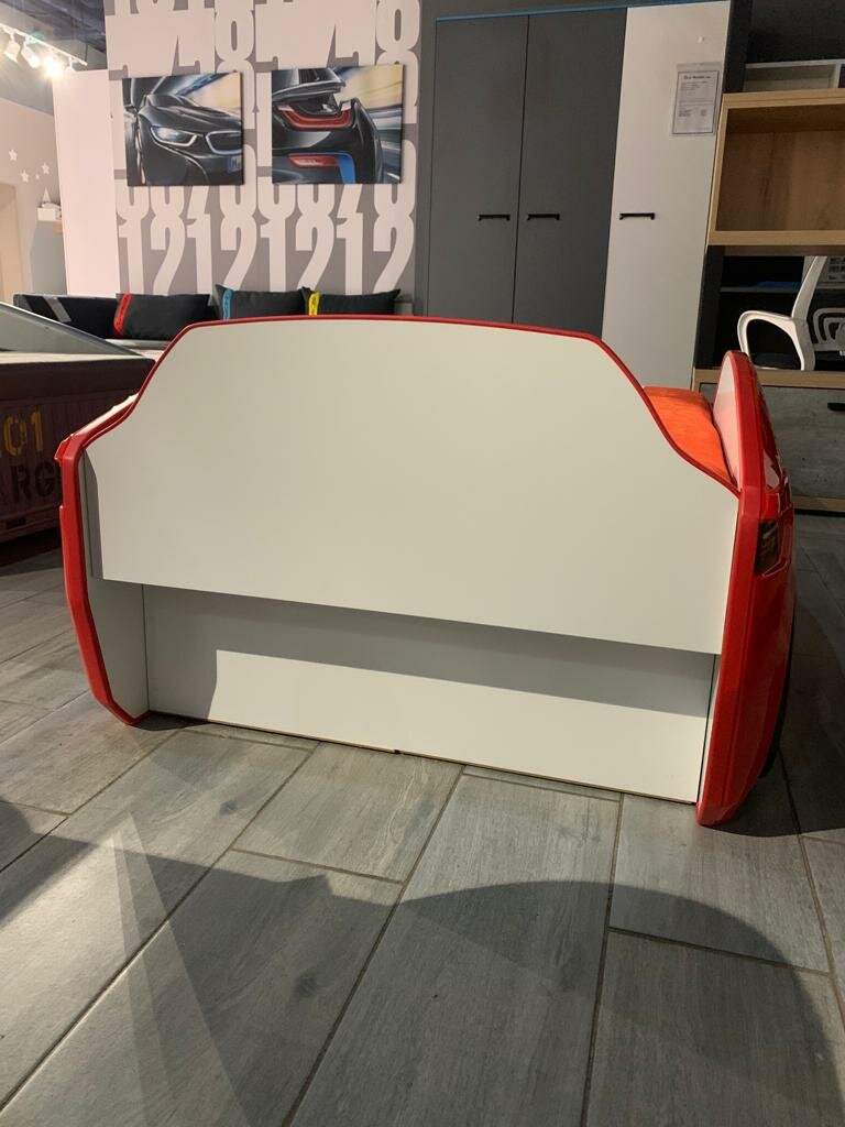 Кровать-машина детская Romack Romeo красная, с подсветкой фар, ящиком для белья типа книжка, объемными колесами, эко матрасом 70х170