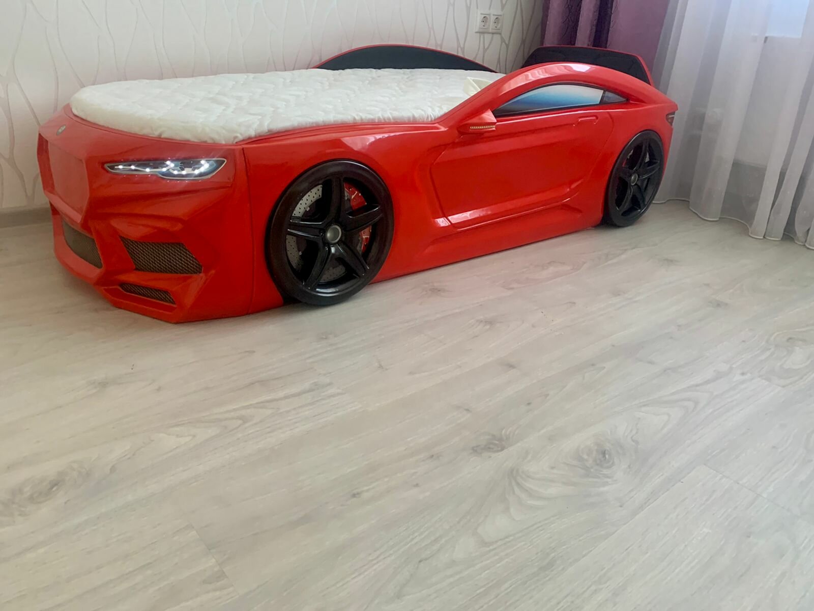 Отзывы на Детская кровать-машина Romeo, цвет красный, с матрасом, ящиком для белья и подсветкой фар