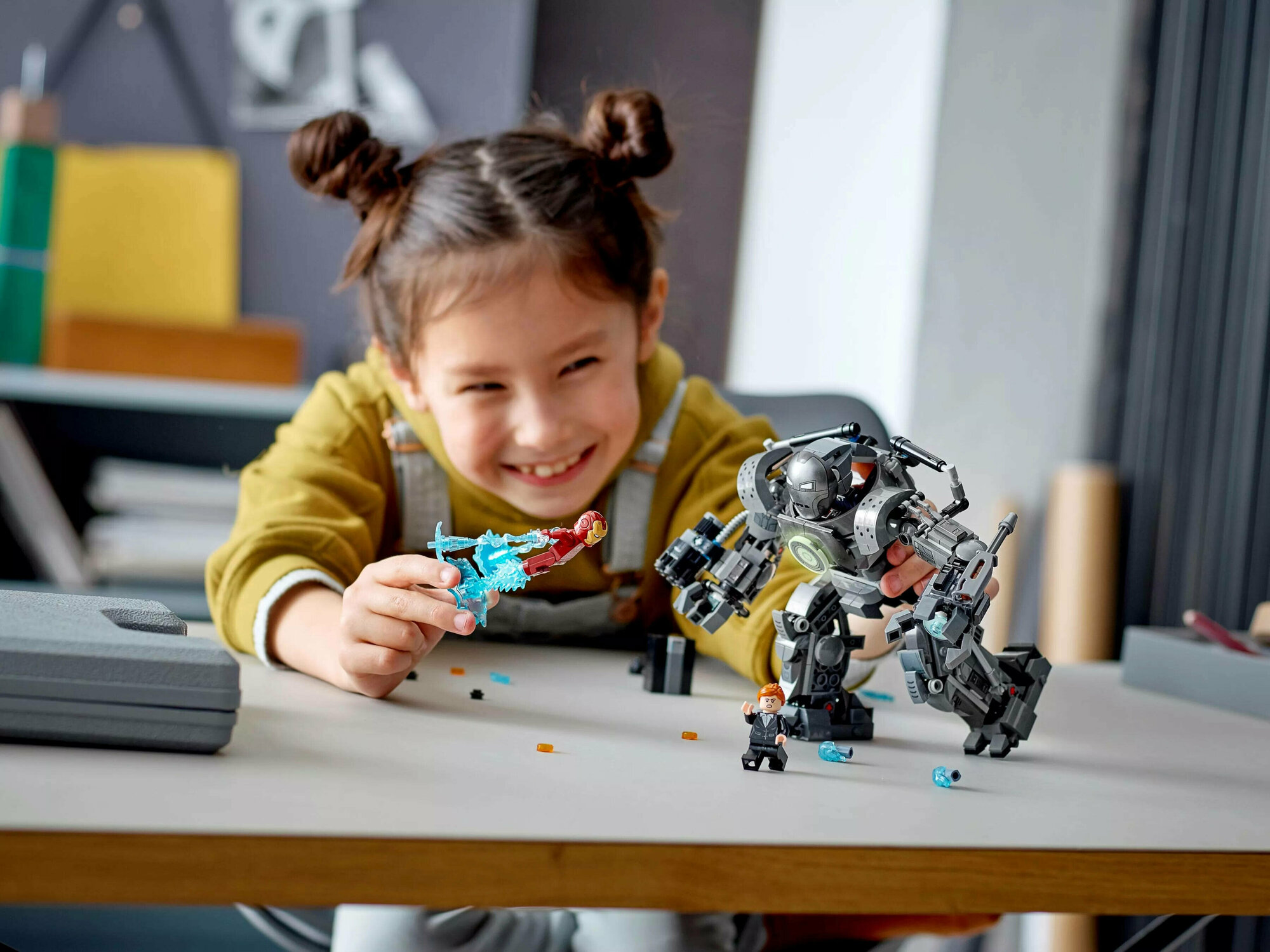 | Дополнительная информация | Дети помещают минифигурку Обадаи Стейна в «Железного Торговца» и управляют подвижным мегароботом в эпической схватке с Железным человеком и Пеппер Потс. Робот «Железный Торговец» насчитывает более 18 см высоту. |