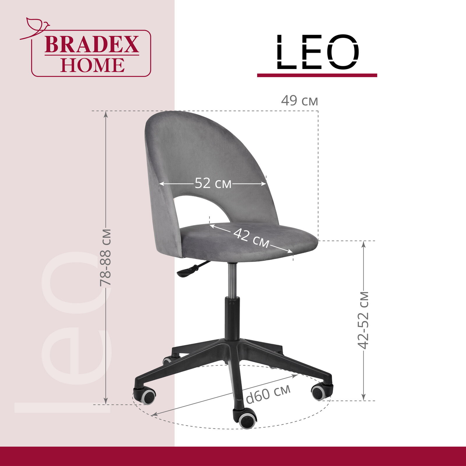 Стул Bradex Leo вращающийся на колесиках темно-серый (RF 0050) 12 290 ₽