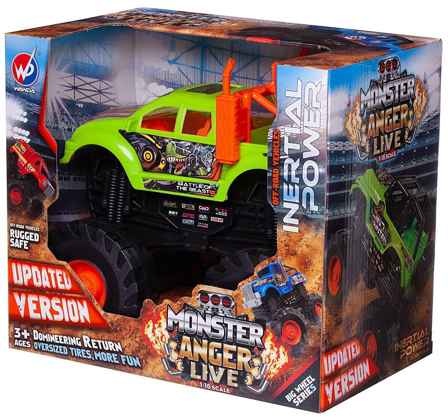Машинка Джип-внедорожник 4х4 Гнев монстра, 1:16, зелено-оранжевая - Junfa Toys [WC-11589/зелено-оранжевая]