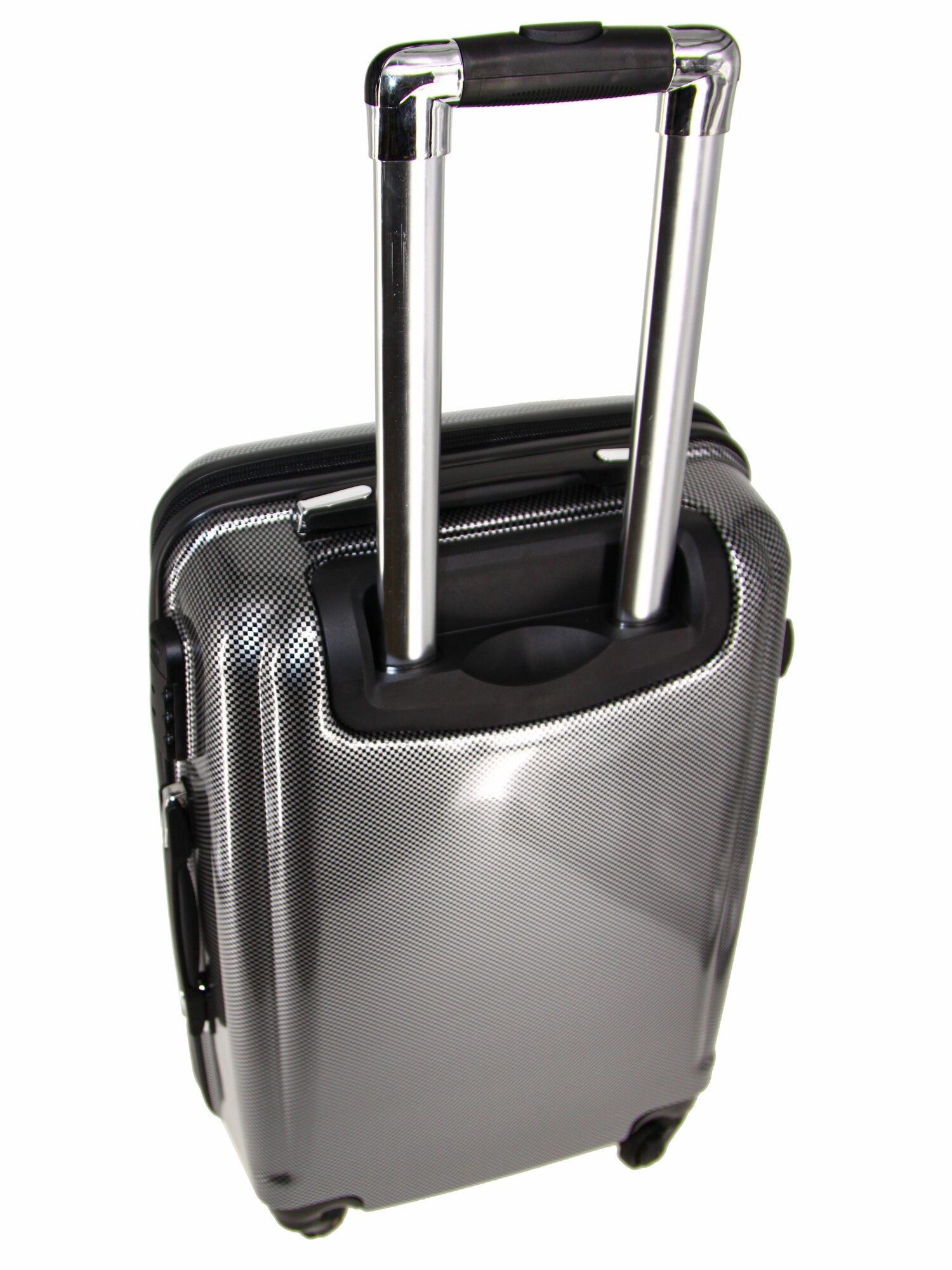 Чемодан Рион+ (RION+) R418, Пластик, L (70 см), 78 литра, 4 колеса, усиленный пластик, черный глянцевый