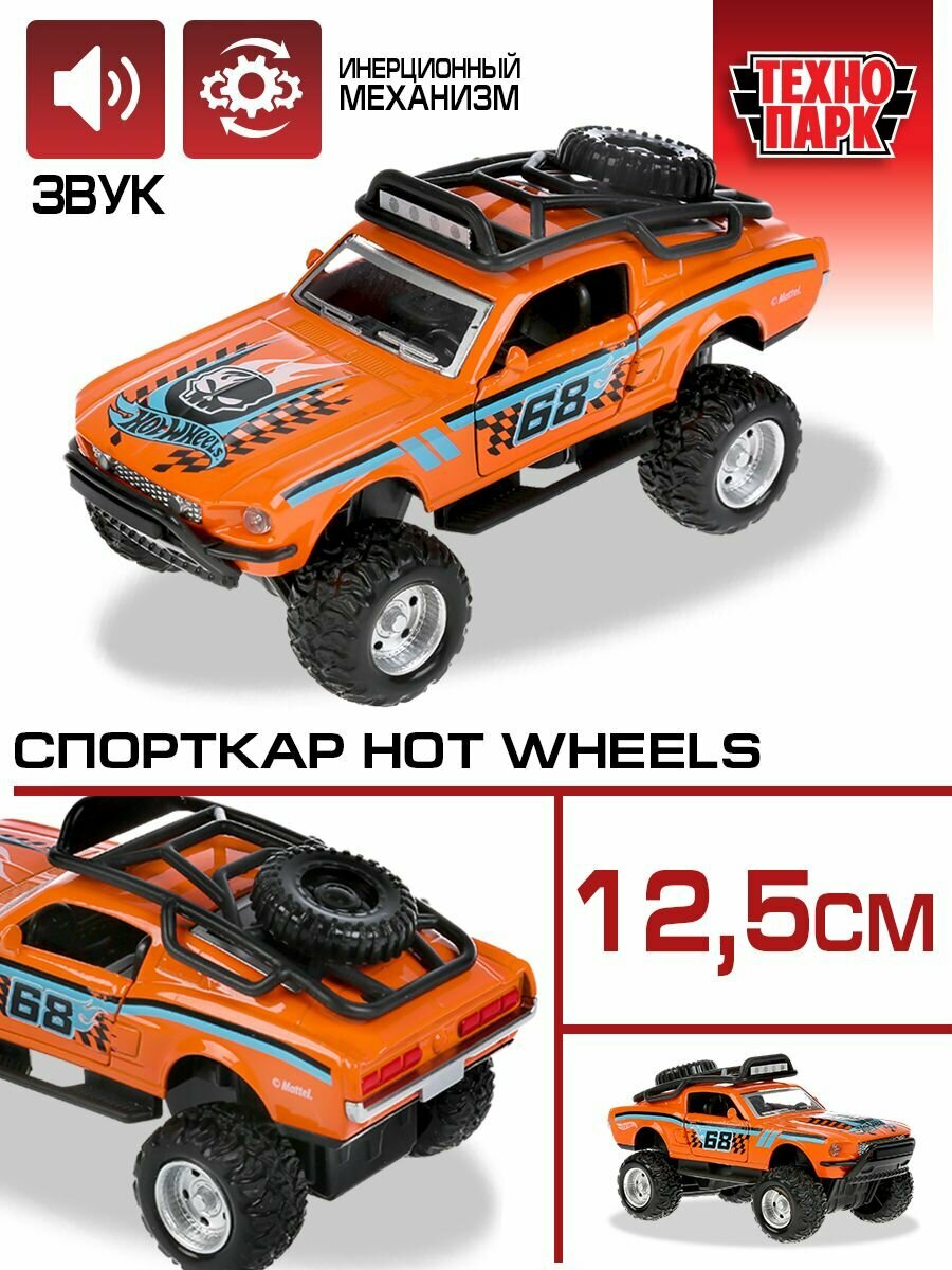 Модель Спорткар Hot Wheels 12,5см Технопарк оранжевый металл инерция свет+звук информация: