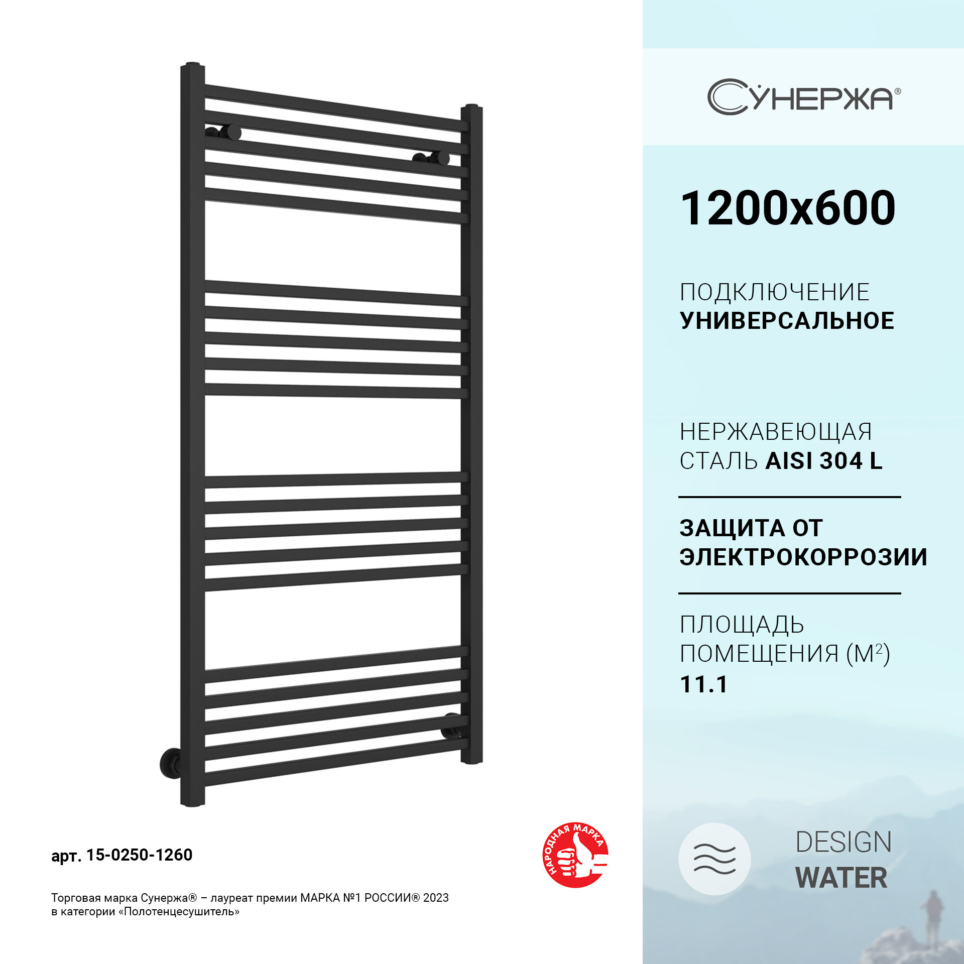 Полотенцесушитель водяной 1200х600 черный матовый Сунержа Модус 31-0250-1260 74 400 ₽