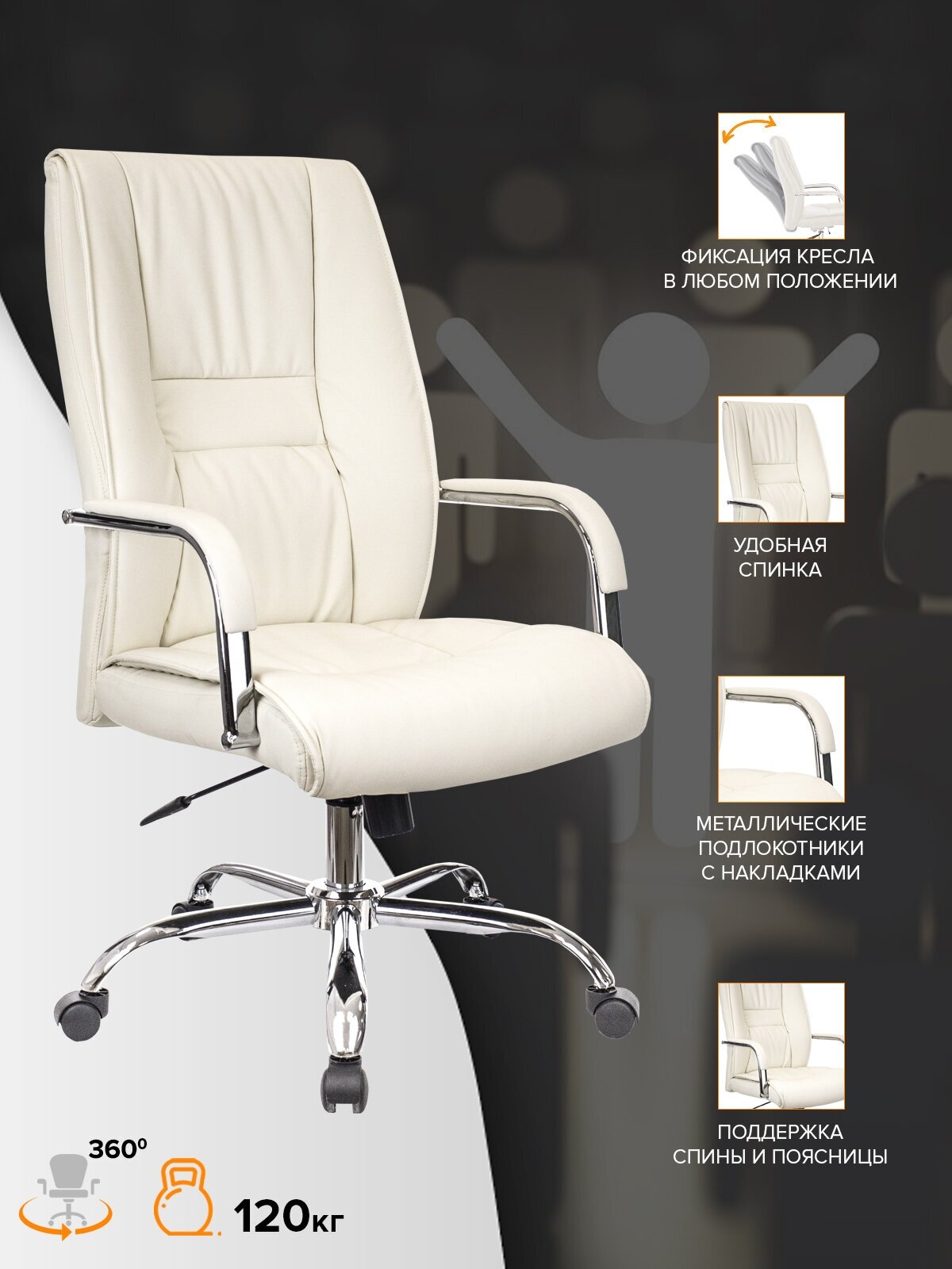 Кресло руководителя Everprof "Rio M", экокожа, бежевое, хромированная крестовина 18 000 ₽