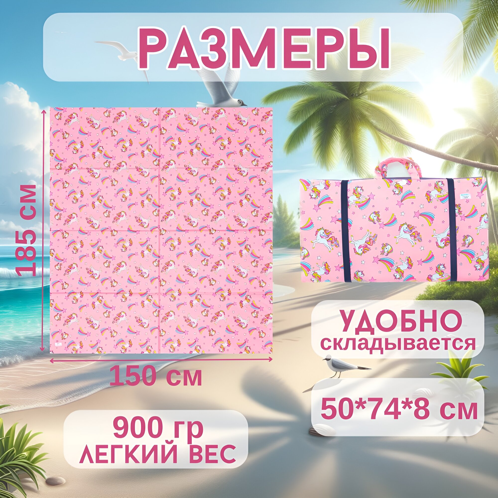 Коврик пляжный складной большой 150*185 см для песка и гальки Принт Единороги информация: