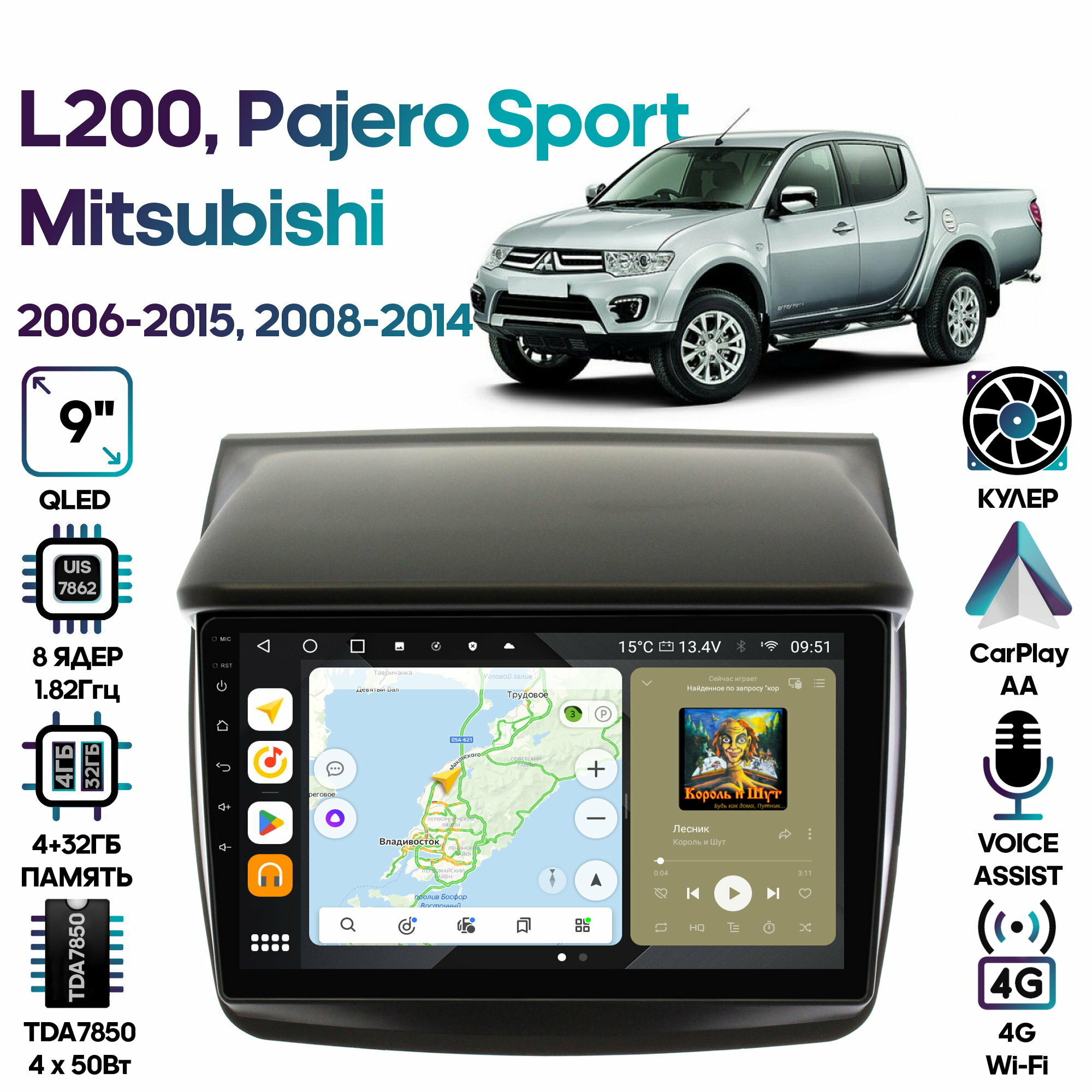 Штатная магнитола Wide Media Mitsubishi L200 2006 - 2015, Pajero Sport 2008 - 2014 / Android 10, 9 дюймов, 4/32GB, 8 ядер, DSP, 4G информация: