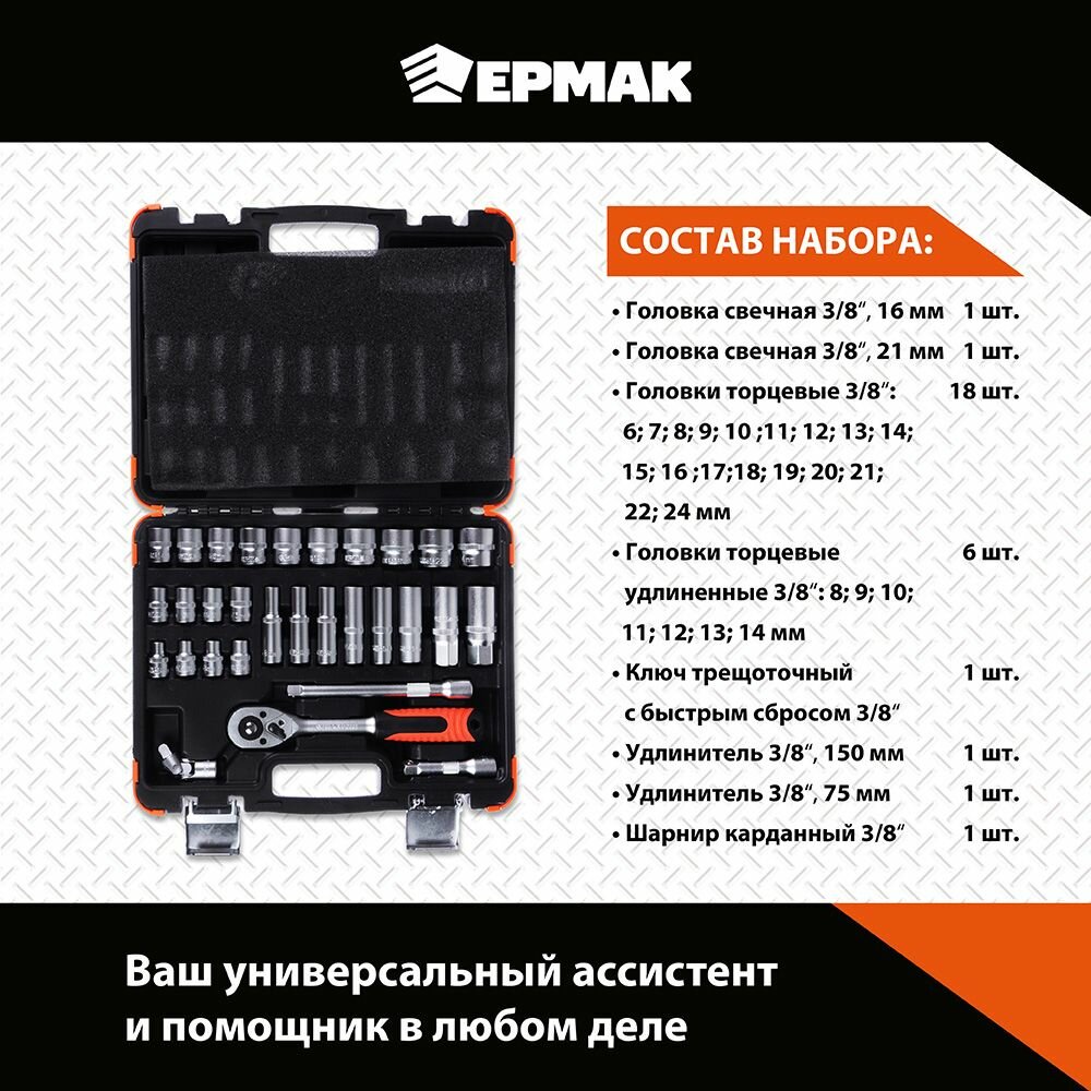Отзывы на Набор слесарных инструментов Ермак, 736-091, 3/8", 6-гранные, сталь, кейс, 30 пр