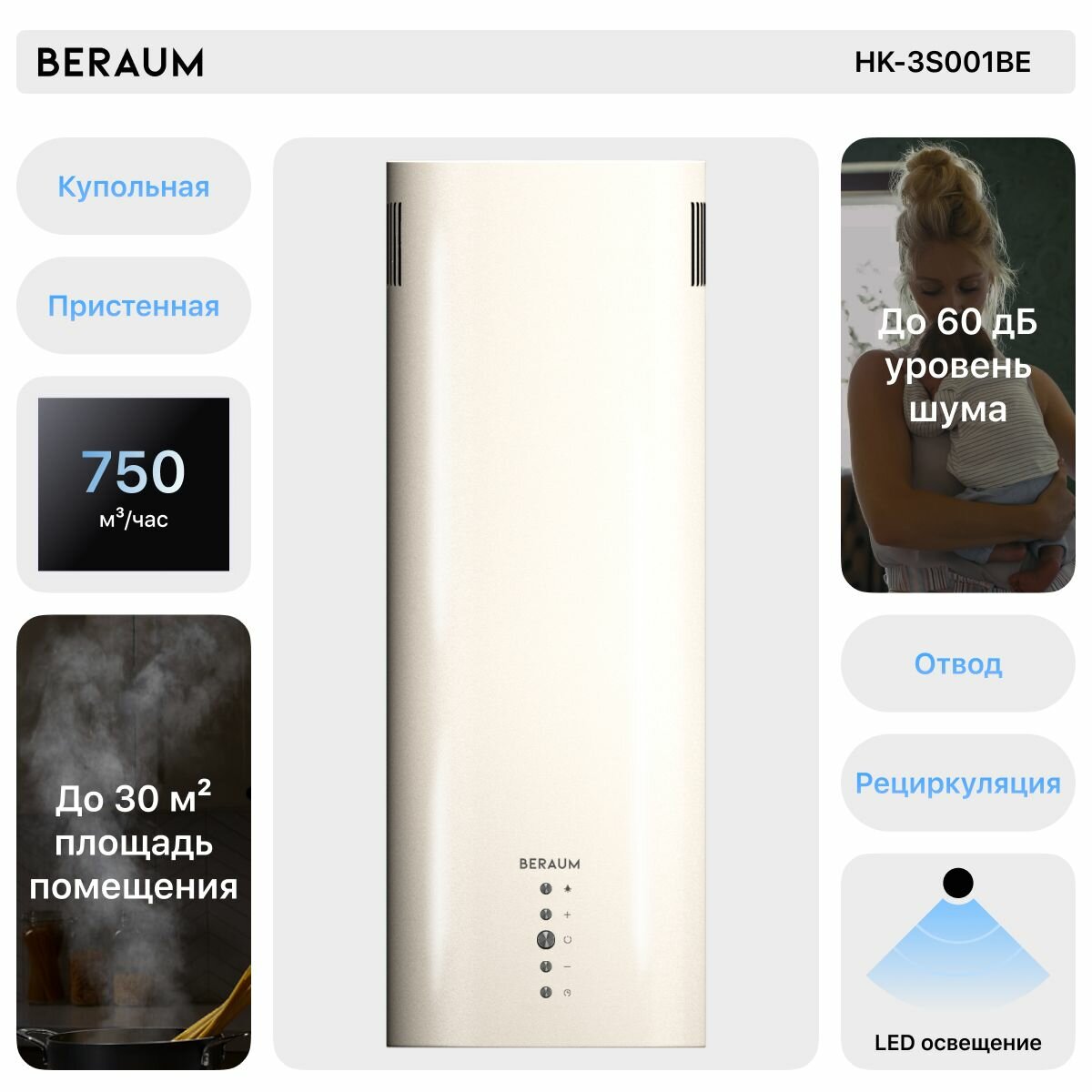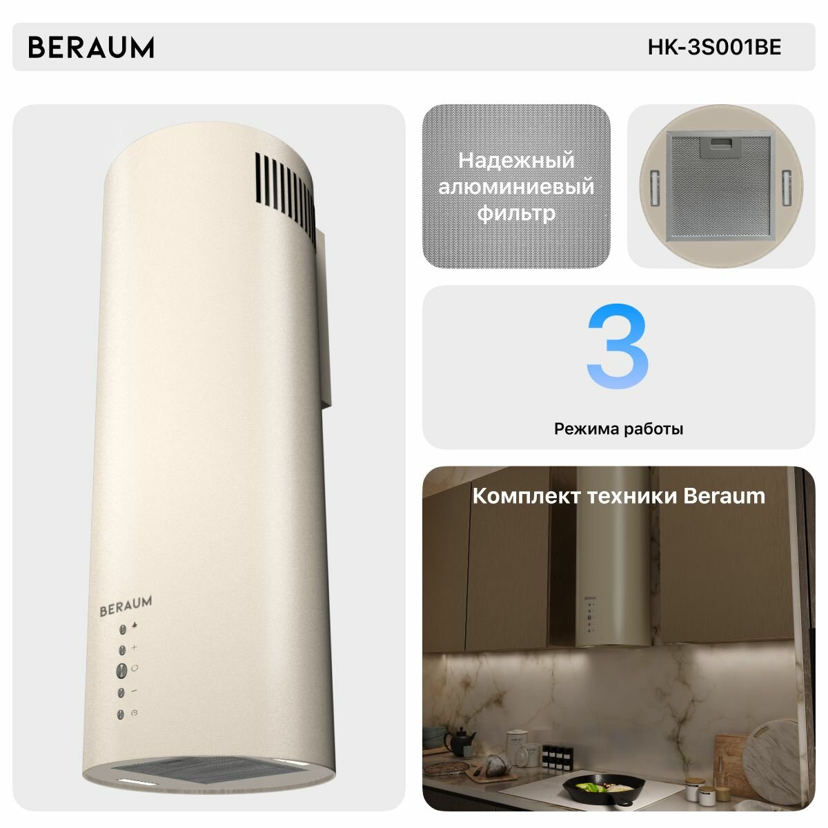 Вытяжка кухонная Beraum HK-3S001BE информация: