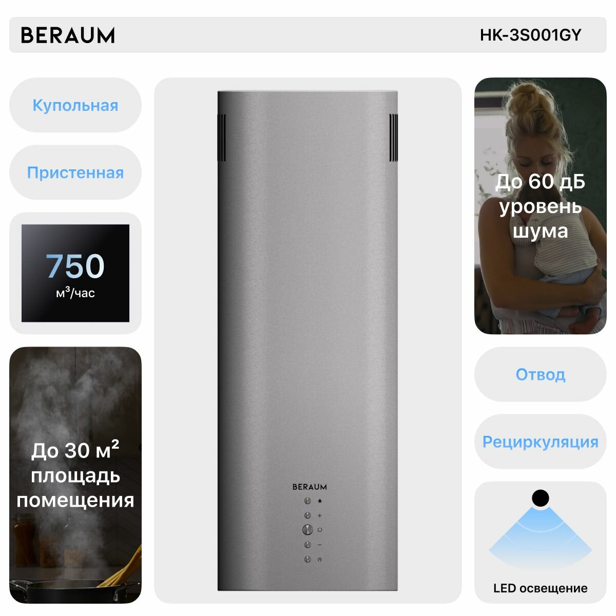 Вытяжка кухонная Beraum HK-3S001GY информация: