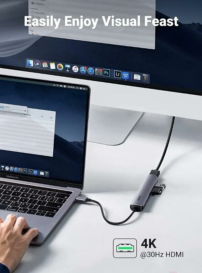 Адаптер UGREEN CM417 (20197) USB-C - 4шт USB 3.0 + HDMI порт 3 289 ₽