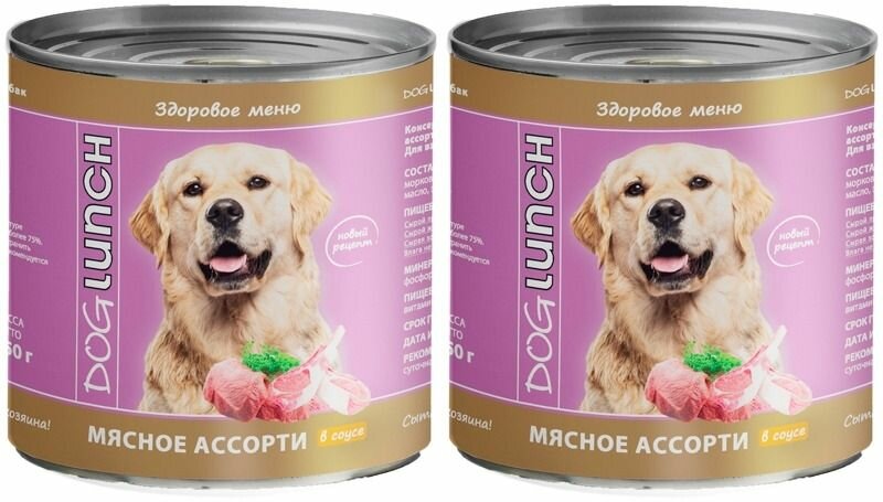 Dog Lunch Консервированный корм для собак Мясное ассорти в соусе, 750 г, 2 шт информация: