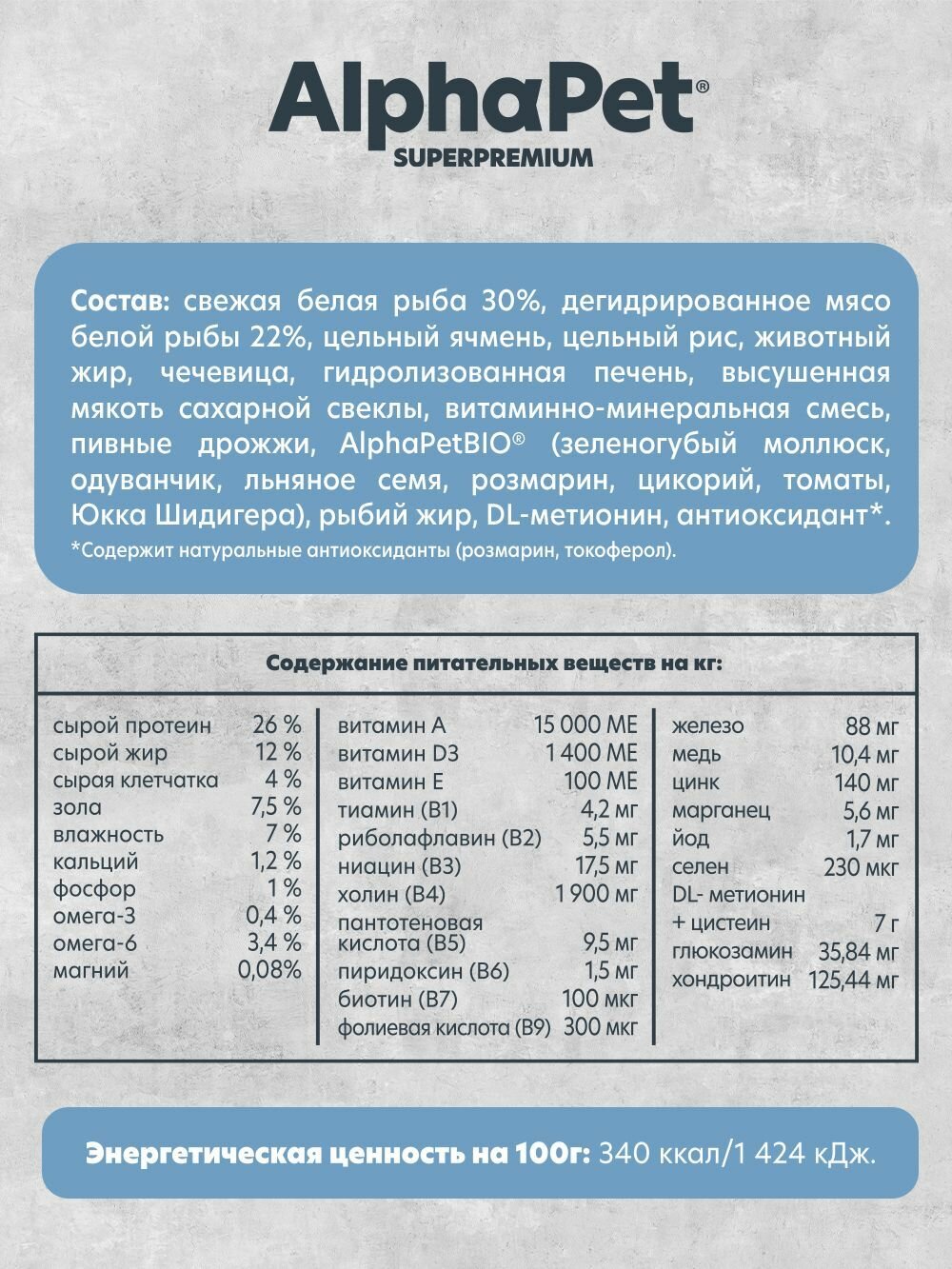 Сухой корм из белой рыбы для взрослых собак мелких пород AlphaPet Superpremium MONOPROTEIN 0,5 кг информация: